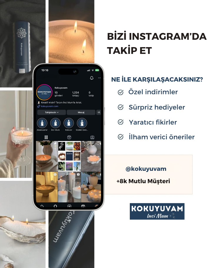Kokuyuvam İnci Mumlar, %100 doğal içeriklerle üretilir ve temiz, çevre dostu bir yanış sağlar. 🌿