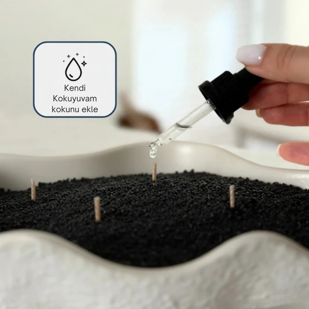 Evet! 🌿 Kokuyuvam’ın kokusuz ürünlerinden birini seçerek fitilin yakılmadan önceki kısmına sevdiğin uçucu yağdan veya mum esansından birkaç damla ekleyebilirsin.
