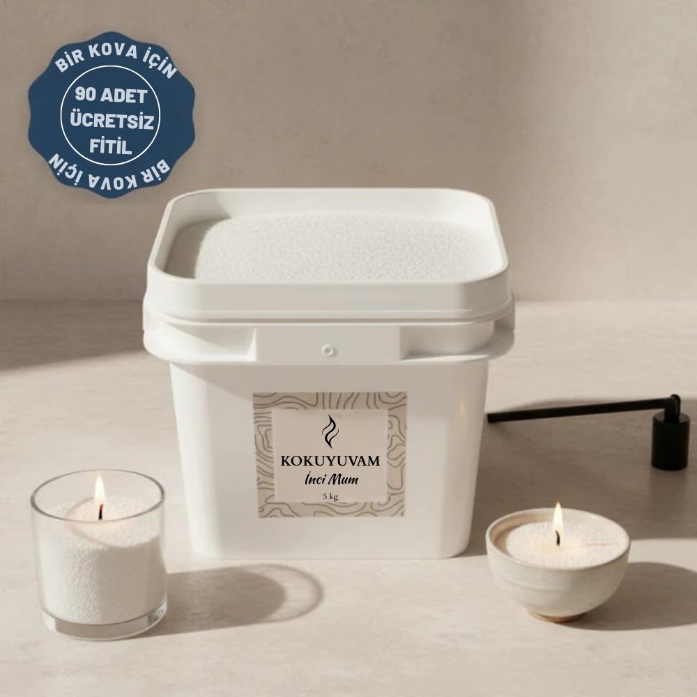 Daha uzun süreli kullanım mı istiyorsunuz? Kokuyuvam’ın yeniden doldurulabilir büyük inci mum kovaları (5 kg ve 10 kg), 1250 ila 2500 saate kadar temiz, doğal ve çevre dostu bir yanış sunar. 🌿
